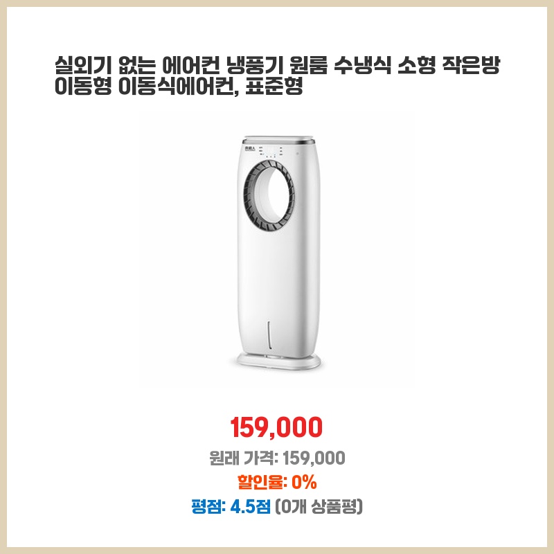 실외기 없는 에어컨 냉풍기 원룸 수냉식 소형 작은방 이동형 이동식에어컨, 표준형