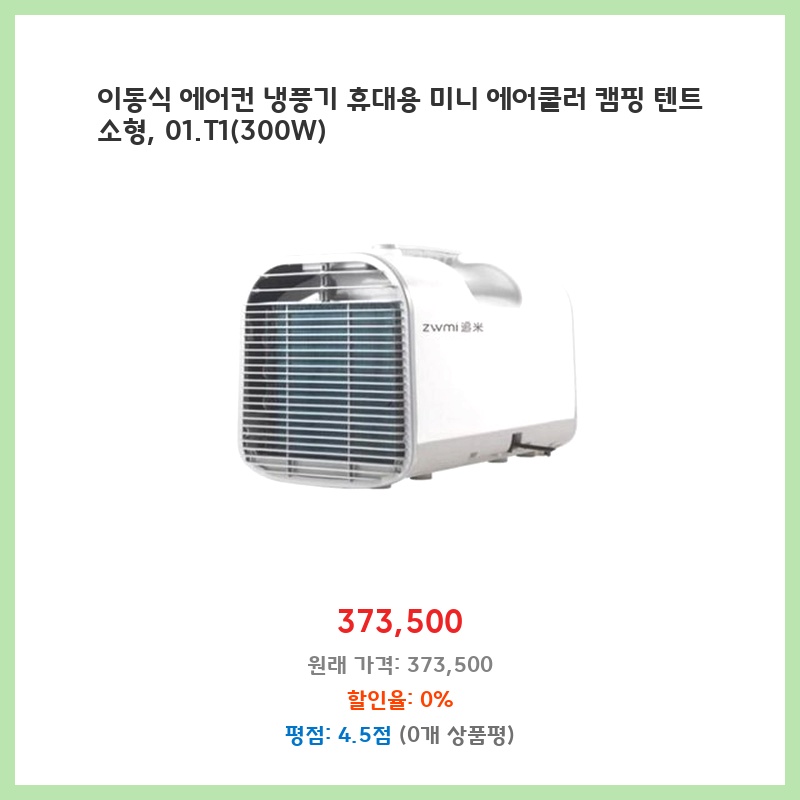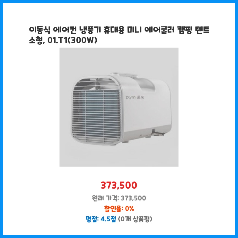 캠핑을 자주 다니는데, 텐트 내부 온도가 높아 잠자리가 불편했습니다. 휴대용이면서 300W의 냉방 성능을 가진 이 제품이 텐트 내부 온도를 낮추는 데 도움이 될 것 같아 구매했습니다. 소형이라 휴대성도 좋을 것으로 기대합니다.